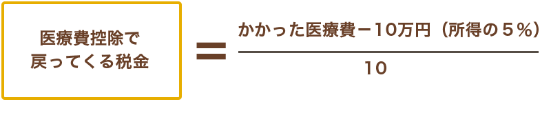 前年の1月~12月までに支払った医療費が10万円(または年間所得の5%の少ないほう)を超えるとき、上限200万円までがあなたの課税所得額から控除され、税金が確定精算されます。